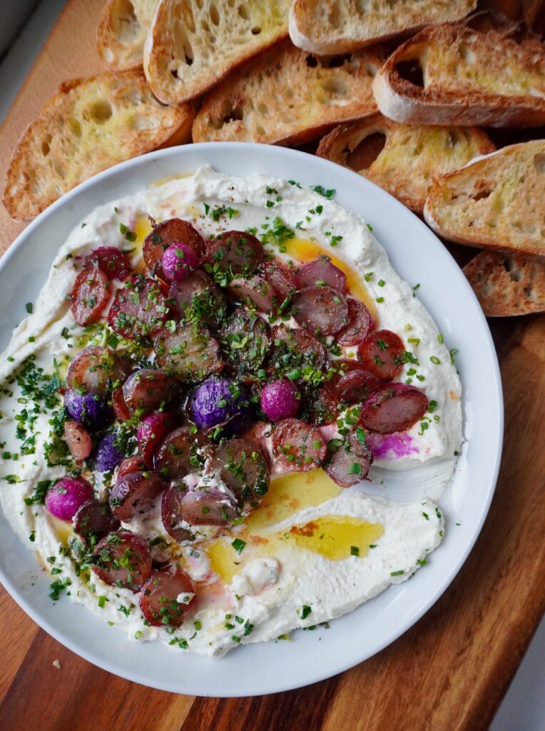 Honey Butter Braised Radishes with Lemony Whipped Feta and Chives