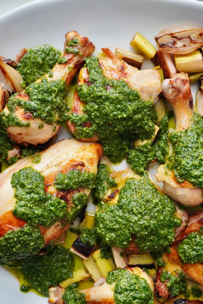 Roast Chicken with Leeks and Green Goddess Chimichurri