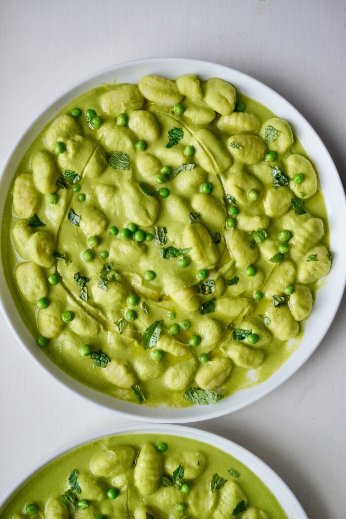 The best way to celebrate sweet spring peas. Pillowy gnocchi swimming in the silkiest, creamiest pea purée — and there’s no cream in sight, just pure pea magic. Simple yet SO perfect. 1000/10.