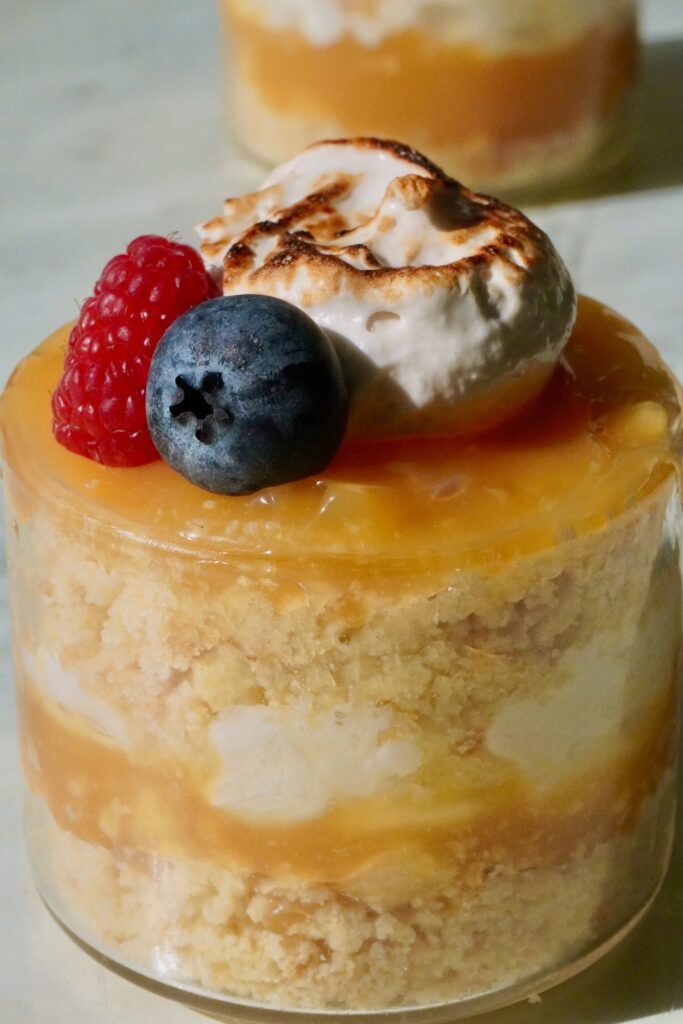 Made with store-bought everything so you do minimal work for maximum reward. Buttery shortbread crumbles, lemon curd, toasted meringue, and fresh berries. Individual, adorable, and deeply impressive-looking for zero effort.