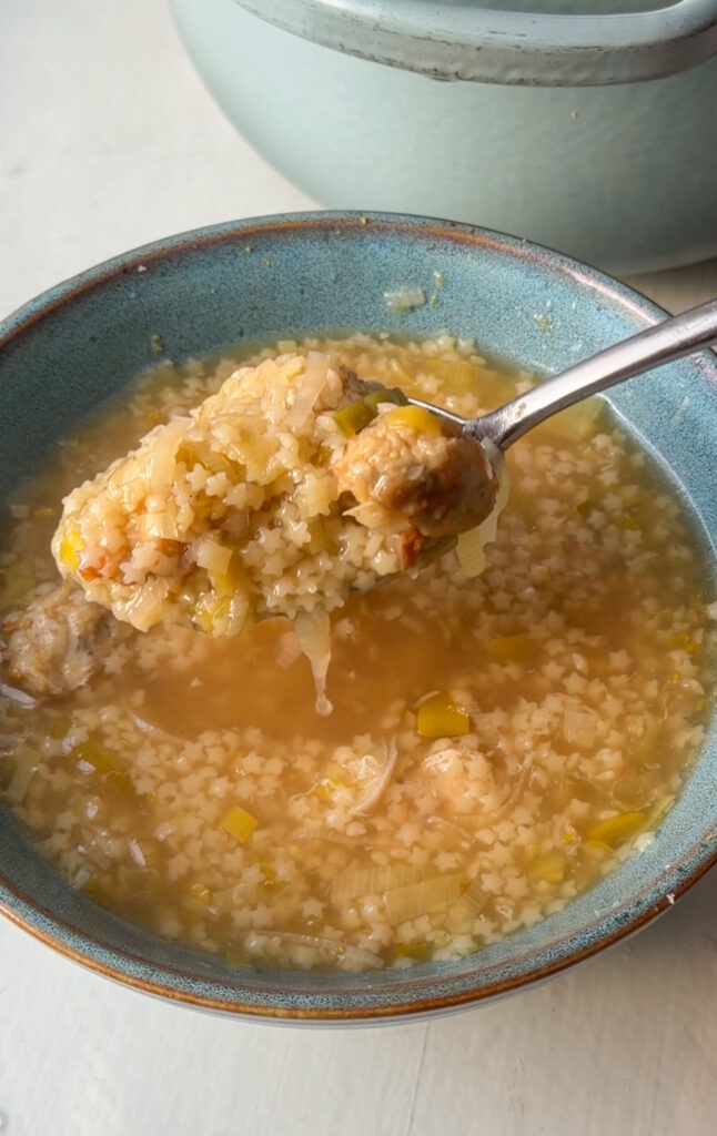 Lemony Leek & Chicken Meatball Pastina Soup