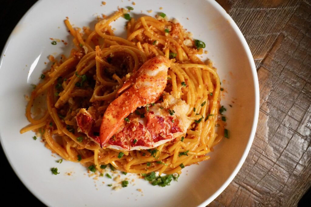 Lobster Spaghetti with Brown Butter Chive Crunch